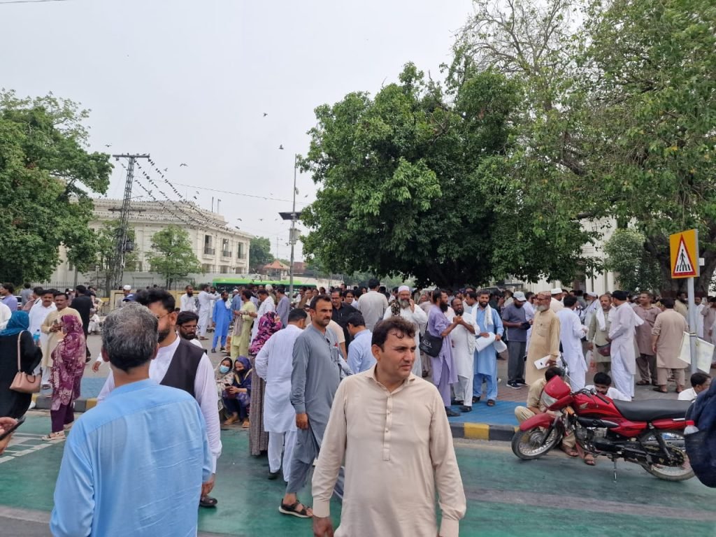 پنجاب مال روڈ پر اتنی گرمی اور حبس ہے کہ کسی ہجوم کا وہاں ٹھہرنا محال ہے مگر وہاں ملازمین ڈٹے ہوئے ہیں پر عزم ہیں کئی ملازمین گرمی کی تاب نہ لا کر بے ہوش ہوگئے