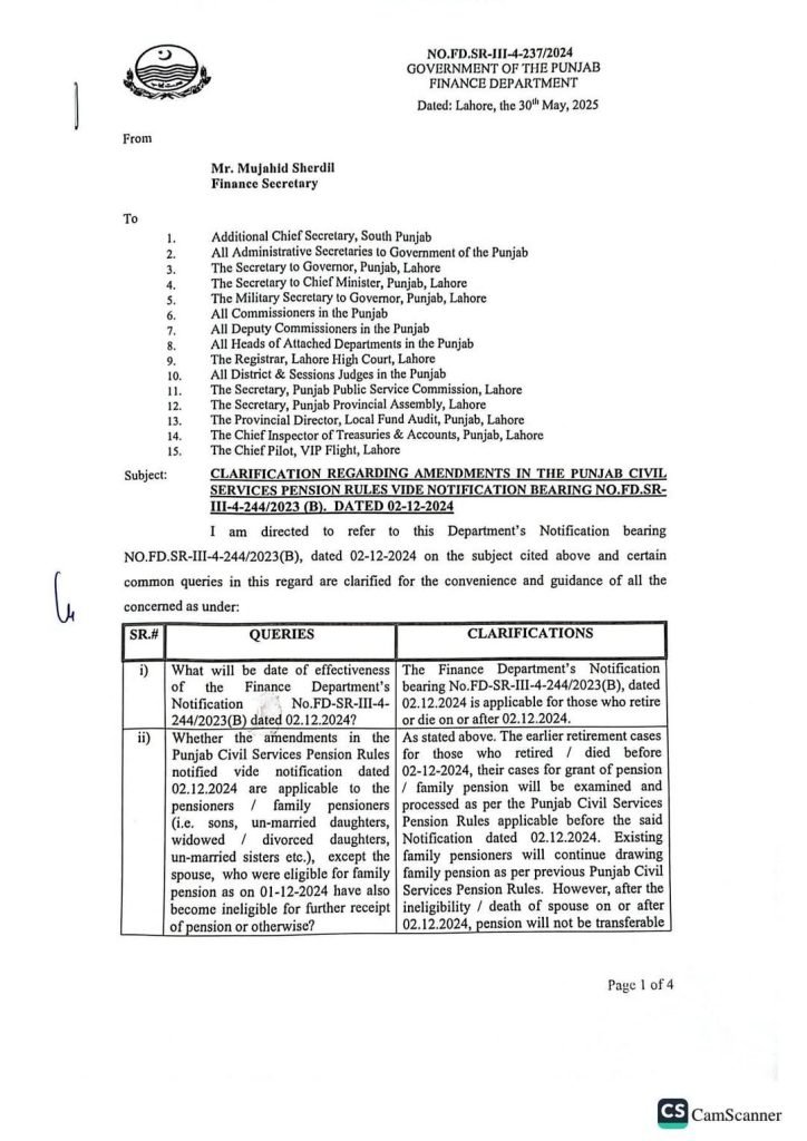 اس نوٹیفکیشن کا اِطلاق 2 دسمبر2024 کو یا اس کے بعد ریٹائر یا انتقال کرنے والوں پر ہوگا