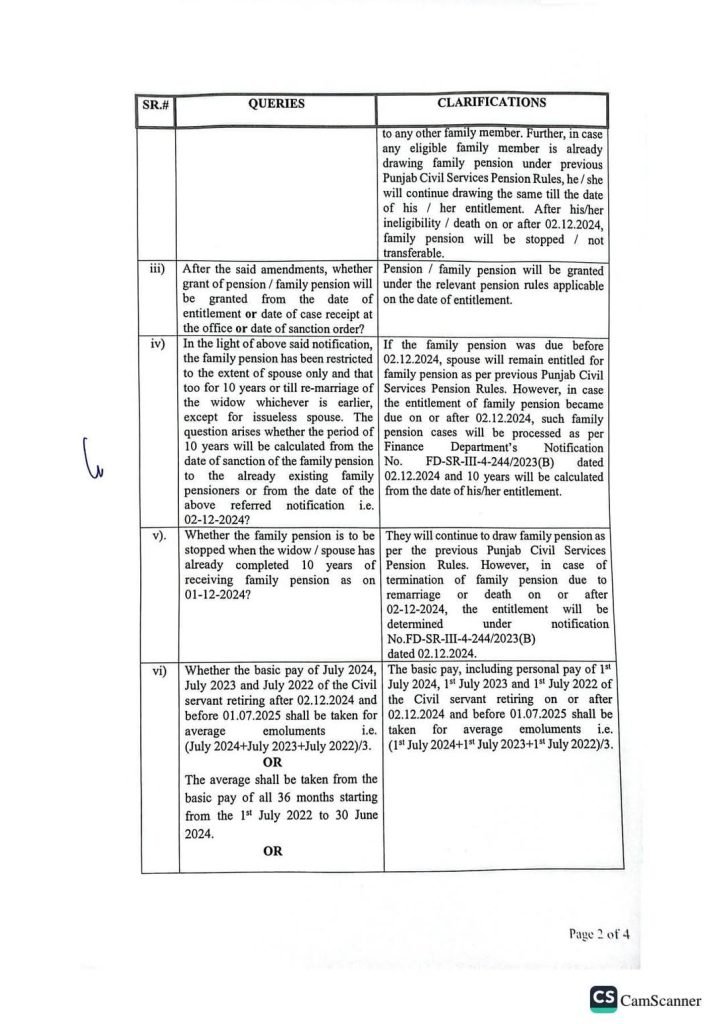 2 دسمبر سے قبل ریٹائر ہونے والوں اور کسی وجہ سے پینشن کیس مکمل نہ کروا سکنے والوں کو پینشن سابقہ قوانین کے مطابق ملے گی موجودہ فیملی پینشنرز بدستور اسی طرح پیشن وصول کرتے رہیں گے البتہ دو دسمبر 24 کے بعد ملازمت کے نا اہل قرار پانے یا شریک حیات کی دو دسمبر کے بعد موت کی صورت میں کسی دوسرے فیملی ممبر کو پینشن منتقل نہیں ہوگی البتہ پہلے سے پینشن وصول کرنے والے دیگر فیملی ممبر پینشن وصول کرتے رہیں گے