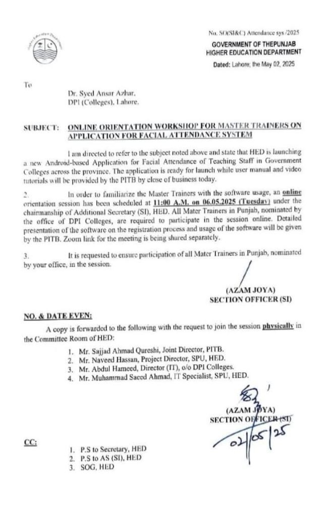 لاہور (خبر نگار)محکمہ ہائر ایجوکیشن پنجاب نے تاذہ ترین نوٹیفکیشن جاری کیا ہے جس کے مطابق استاد کی حاضری فیشیل (چہرے کی شناخت ) سے ہوگی پہلے بہت سے سرکاری اور پرائیوٹ اداروں میں بایومیٹرک رائج ہے ملازمین مشین کو انگوٹھا لگا کر اپنی حاضری لگواتے ہیں کہ وہ ادارے میں آئے ہوئے ہیں پوری دنیا میں چھٹے ہوئے بدمعاشوں اور جرائم پیشہ افراد کو چہرے سے شناخت کرتے ہیں دنیا میں کہیں بھی اساتذہ کی حاضری کے لیے یہ طریقہ رائج نہیں پیپلا ،اتحاد اساتذہ اور دوسری تمام تنظیموں نے اسے مسترد کر دیا ہے اور یپلا اس بارے میں یہ اعلان کرنے والی ہے کہ کوئی استاد ایسی حاضری نہ لطریقہ کار یہ ہے کہ انڈرایڈ موبائیل کے پلے سٹور میں ایک فیشیل اٹنڈنس ایپ ہے جسے ڈاون لوڈ کرنا ہے اور پھر اس پر فیس سکین کرنا ہے جیسا کہ تصویر میں دیکھایا گیا ہے پیپلا نے اعلان کیا ہے کہ کوئی اس طرح کی اٹنڈنس نہیں لگائے گا تمام کالج اساتذہ اس کا مکمل بائیکاٹ کریں گےگائے یہ اساتذہ کی توہین ہے