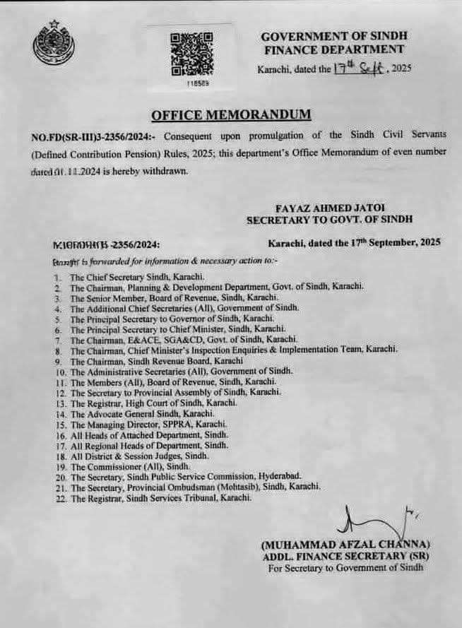 فنانس ڈویژن صوبہ سندھ نے کنٹری بیوٹری پیشن رولز کو واپس لینے کا نوٹیفکیشن جاری کر دیا سندھ کے سرکاری ملازمین کو اتحاد اساتذہ پاکستان کی مبارکباد