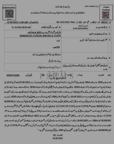 ملتان ( نامہ نگار) فاریسٹری ڈیپارٹمنٹ بہا الدین زکریا یونیورسٹی ملتان کی اسسٹنٹ پروفیسر ڈاکٹر شازیہ نے ملتان کے تھانہ ڈی ایچ اے میں ایف آئی آر درج کروائی ہے جس کے مطابق ان کے اپنے ہی ڈیپارٹمنٹ کے سربراہ ڈاکٹر احسان قادر نے انہیں 25 ستمبر کو صبح دس بجے اپنے دفتر میں طلب کیا وہ جونہی دفتر میں داخل ہوئیں ملزم ڈاکٹر احسان قادر نے دروازہ اندر سے بند کر لیا زبردستی ے لباس کیا اور زیادتی کا نشانہ بنایا ایف آئی آر درج ہونے کے بعد پولیس نے ڈاکٹر احسان کو حراست میں لے کر عدالت کے روبرو پیش کر کے تین روزہ جسمانی ریمانڈ حاصل کر لیا دوران تفتیش ملزم جرم سے مسلسل انکار کرتا رہا تفتیش کی رپورٹ آنے پر عدالت نے انہیں جیل بھیجنے کا حکم دیا ملزم ڈاکٹر احسان قادر ایک جانی پہچانی شخصیت ہیں اساتذہ کے ایک گروپ کے لیڈر ہیں اور اساتذہ سیاست میں سر گرم رہتے ہیں اس لیے یہ تنازع اساتذہ کے گروپس کے درمیان ایک گرما گرم بحث کا موضوع بھی بنا ہوا ان کا گروپ انہیں ایک نیک اور پارسا ثابت کرنے پر تلا ہے اور ان کے شاگردوں اور دوستوں کی جانب سے ان کے حق میں آرا سوشل میڈیا پر پیسٹ کروا رہا ہے جبکہ دوسرا گروپ معاملے کی غیر جانبدارانہ تحقیقات کا مطالبہ کر رہا ہے اور ان کے کردار میں جھول کا شک کر رہا ہے اس واقعے کے بعد یہ بات بھی منظر عام پر آئی ہے کہ درخواست گزار پروفیسر شازیہ افضل کی کافی عرصہ سے جان پہچان تھی ڈاکٹر احسان ہی اسے کسی دوسرے شہر سے ٹرانسفر کروا کر لائے 2023 میں دونوں کی شادی ہوئی جو صرف چھ ماہ چل سکی اور طلاق ہو گئی پروفیسر ڈاکٹر احسان قادر کے حمایت میں ایک گروہ کا یہ بھی موقف ہے کہ کیونکہ ڈاکٹر احسان ایک گروپ کا رہنما ہے اس لیے یہ سیاسی چپقلش کا شاخسانہ ہے