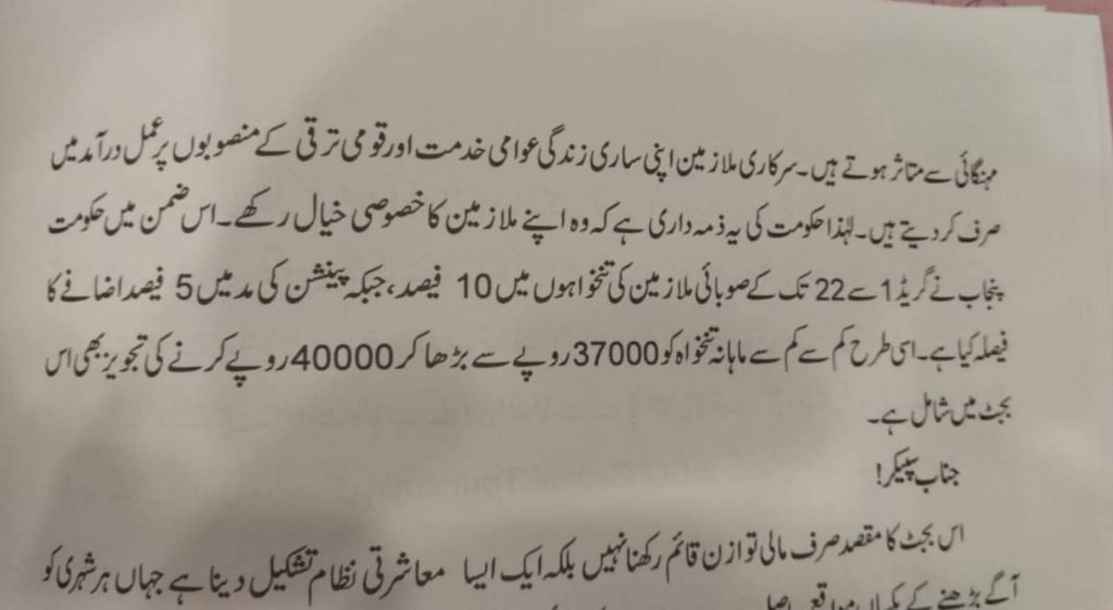 توقع کی جارہی تھی کہ ن لیگ کی حکومت مرکز کی تقلید کرتے ہوئے 30 فیصد دسپیرٹی ریڈکشن الاؤنس ۔دس فیصد ایڈہاک ریلیف الاؤنس اور پیشن میں سات فیصد اضافہ کرئے گی مگر دیگر صوبوں کی طرح دسپیرٹی ریڈکشن الاؤنس کا ذکر بجٹ میں کہیں بھی نہیں
