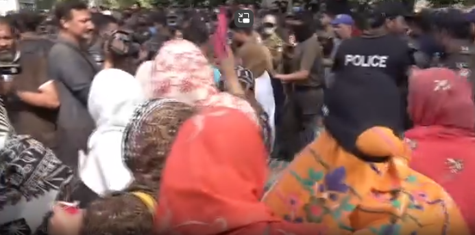وزیر اعلی ہاؤس پہنچ کر یہاں بھی دھرنا دے دیا قیادت سمیت بہت سے افراد گرفتار تھوڑی دیر زیر حراست رکھنے کے بعد رہا کر دیا چیرنگ کراس پر دھرنا جاری