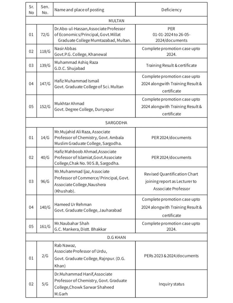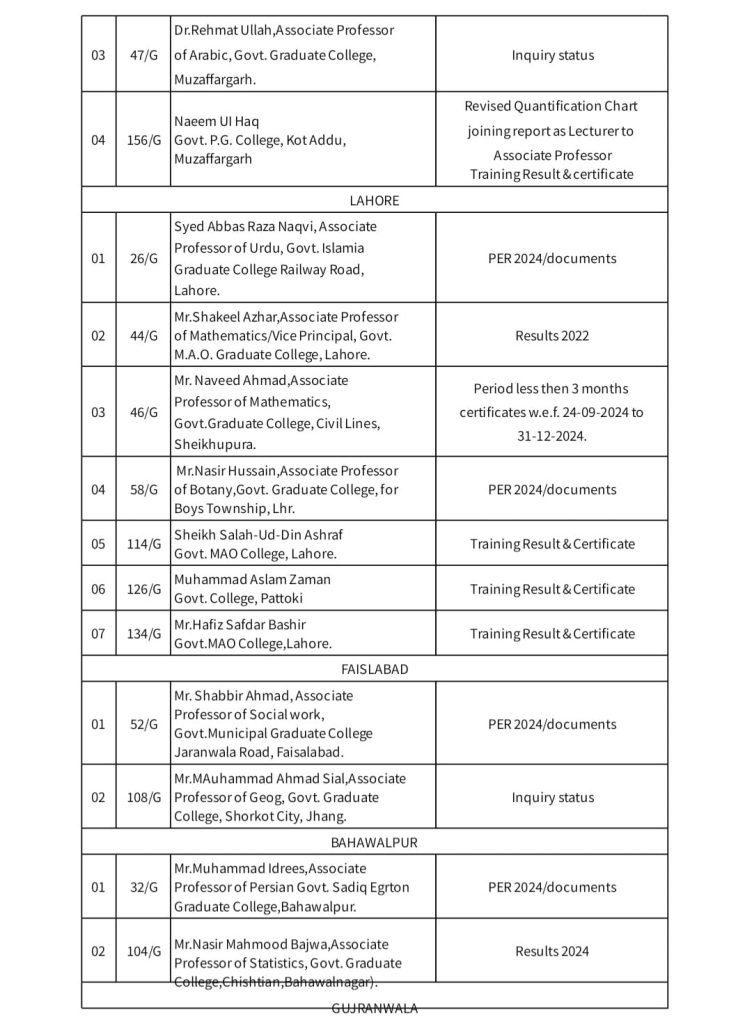 یہاں ایک لسٹ دی جا رہی ہے جن کے کیسز نامکمل ہیں اور بار بار یاد دہانیوں کے خود متعلقہ مرد ایسوسی ایٹ پروفیسرز ڈپٹی ڈائریکٹر اور ڈائریکٹرز مل کر بھی ان کی کمیاں خامیاں دور نہیں کر پا رہے