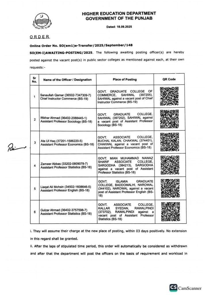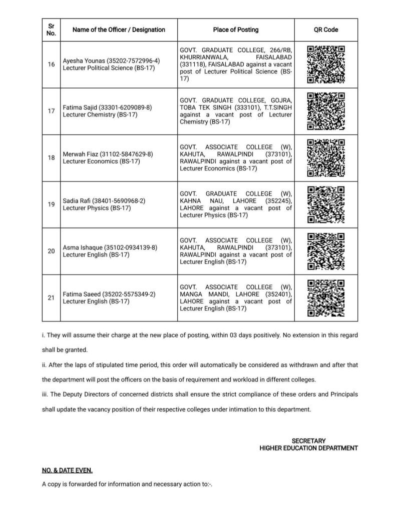 مرد حضرات کے پوسٹنگ آرڈرز