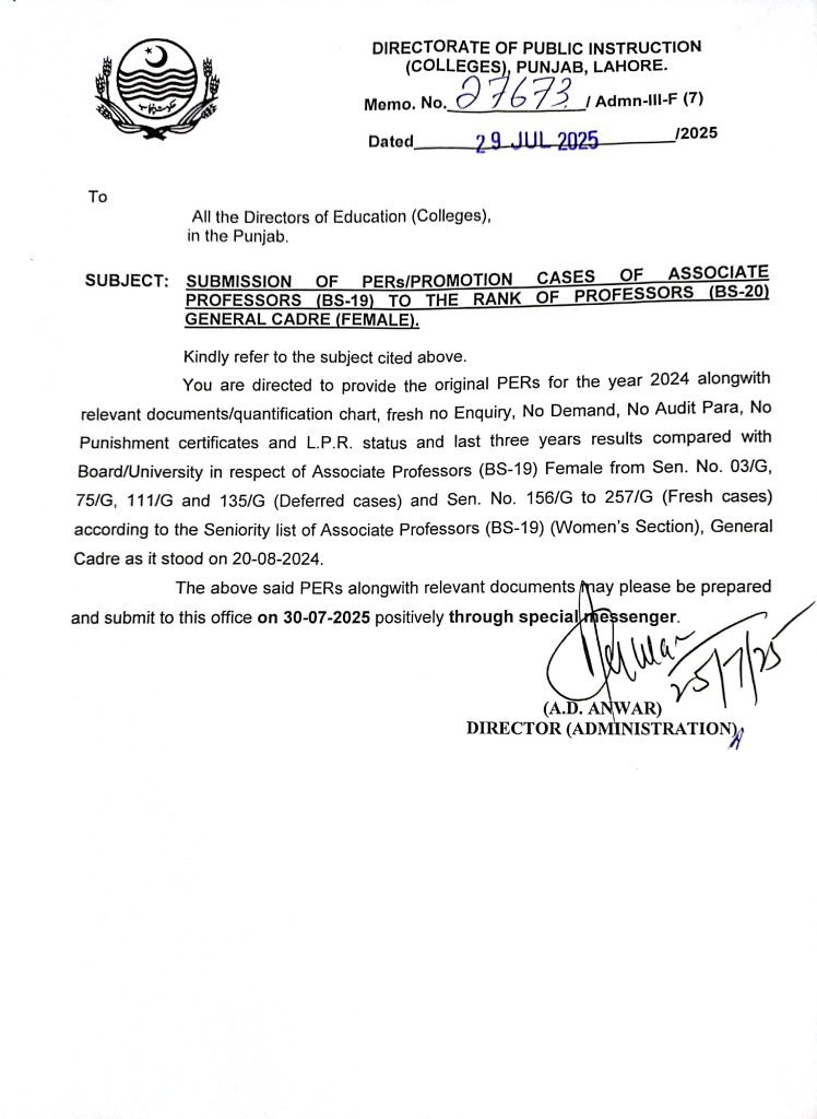 درکار ہیں اس کے علاؤہ ان کی ایل پی آر کا سٹیٹس بھی بتائیں جو ان کے کیسز کو آخری شکل دینے کے لیے ضروری ہیں یہ 30 جولائی 2025 تک پہنچ جانا چاہیے یہ امر بھی دلچسپ ہے کہ یہ لیٹر بھی کالجز میں 30 جولائی کو ہی بجھوایا گیا