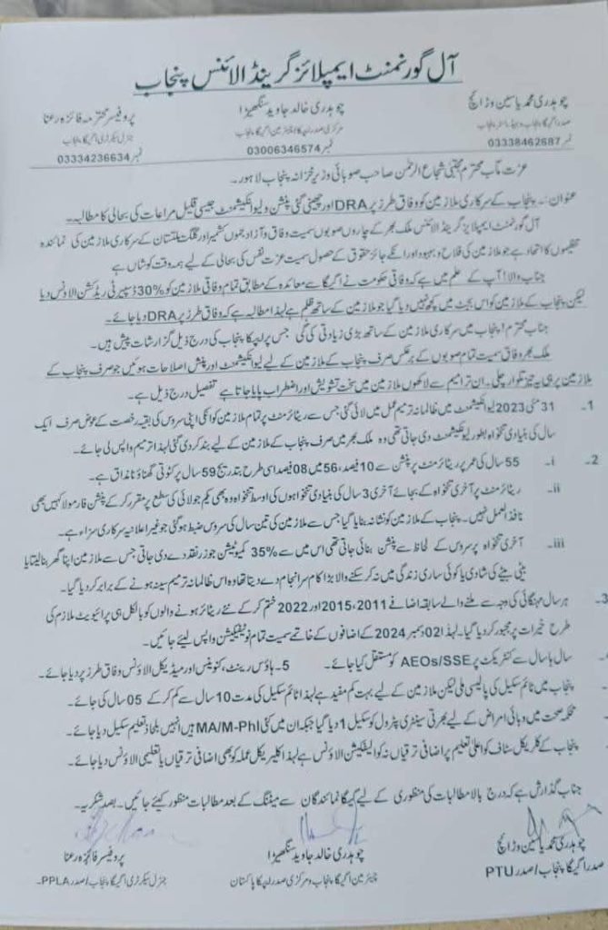 آج آگیگا پنجاب کا اجلاس گورنمنٹ دیال سنگھ کالج لاہور میں زیر صدارت خالد جاوید سنگھیڑہ منعقد ہوا نظامت کے فرائض سیکرٹری اگیگا پنجاب پروفیسر فائزہ رعنا نے انجام دئے ماضی میں کھوئی گئی تمام سہولیات کی واپسی کے علاؤہ وفاق میں دئیے گئے تیس فیصد دسپیرٹی ریڈکشن الاؤنس کو پنجاب کے ملازمین کو دئیے جانے کا مطالبہ کیا گیا 25 کی صبحِ تک کا وقت دیا گیا کہ چارٹر آف ڈیمانڈ میں درج تمام مطالبات تسلیم کرنے کا وقت دیا گیا بصورت دیگر 25 جون 2025 بروز بدھ مال طور پر مسجد شہداء پر دھما دھم مست قلندر ہوگا اور صوبائی اسمبلی تک احتجاجی ریلی منعقد کی جائے گی