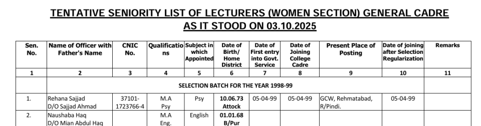لاہور (نامہ نگار )محکمہ ہائر ایجوکیشن ڈیپارٹمنٹ نے حال ہی میں خواتین لیکچررز کی سنیارٹی لسٹ جاری کی ہے جس میں موجودہ جائے تعیناتی کا کالم اکثریت کا خالی پڑا ہے یاد رہے کہ کمیشن کی جانب سے محکمے کو نام ولدیت ،تاریخ پیدائش، مضمون جس میں سلیکشن ہوئی ڈومیسائل کا ضلع سلیکشن کے وقت پنجاب پبلک سروس کمیشن کی طرف سے محکمے کو مہیا کیے جاتے ہیں آپ کا شناختی کارڈ نمبر کیا ہے ،اپ کی پہلی انٹری ان گورنمنٹ ملازمت، موجودہ جائے تقرری وغیرہ آپ نے فراہم کرنا ہوتے ہیں آپ نے دو کام کرنا ہیں ایک تو یہ آپ اپنے اور ولدیت کے نام کے سپیلنگ جیک کرنا ہوتے اور نام وہی ہونا جاہیے جو آپ کی اسناد اور فسٹ پوسٹنگ آرڈرز پر لکھے ہیں اس میں کوئی اضافہ یا کمی نہیں ہونا چاہیے اچھی طرح چیک کر لیں دوسرے یہ کہ تاریخ پیدائش اچھی طرح چیک کر لیں اس میں کوئی فرق ہرگز نہیں ہونا چاہیے تیسرے یہ کہ آپ کی تاریخ انٹری ان گورنمنٹ سروس ضرور درست ہونا چاہیے اگر لیکچرر سے پہلے کوئی اور گورنمنٹ جاب کی ہو تو اس کا اندراج یہاں ضرور کروائیں اگر لیکچرر سے ہی شروعات کی ہے تو دونوں جگہوں پر ایک ہی تاریخ لکھی جائے گی آپ کو اگر محکمہ کی جانب سے کوئی شیٹ فراہم کی گئی ہے تو اسے پر کر کے اور اگر نہیں تو سنیارٹی لسٹ جیسی شیٹ بنوا کر اس پر تمام کوائف درست ٹائپ کروا کر پرنسپل کے واسطے سے بھجوا دیں اور درست ہونے پر دوبار چیک کریں عموما کئی ساتھی لاپرواہی کرتے ہیں اور غلطی ساری سروس چلتی رہتی ہے اور آخر میں پریشانی کا باعث بنتی ہے