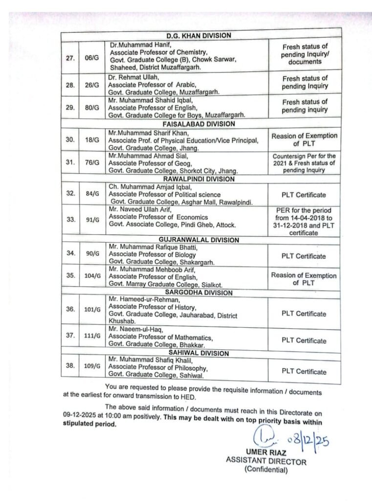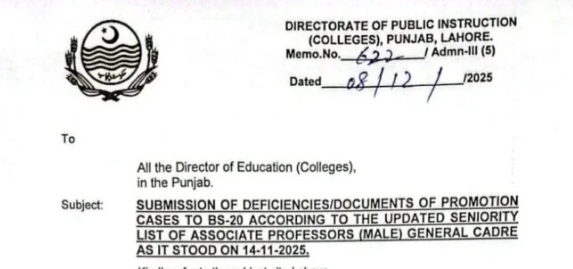 گریڈ انیس سے بیس میں ترقی کے منتظر ایسوسی ایٹ پروفیسر توجہ فرمائیں
