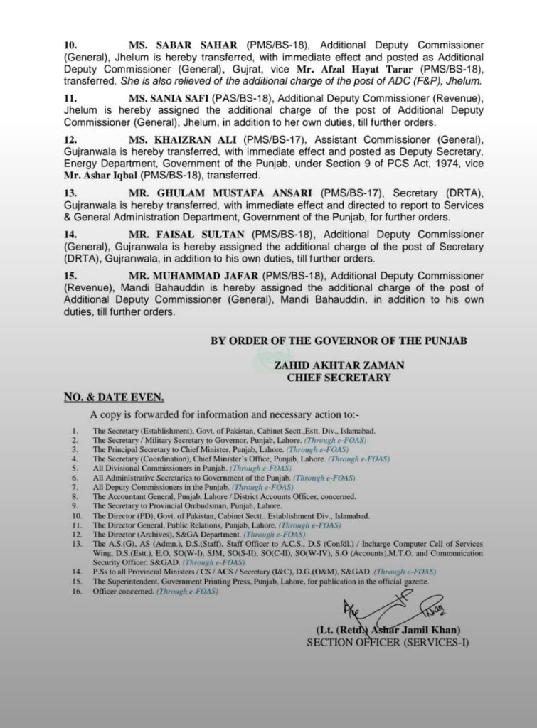 ،سپیشل سیکرٹری منیب الرحمان کو سیکرٹری سروسز کو رپورٹ کرنے کی ہدایت نئے تعینات ہونے والے سپشل سیکرٹری تجمل عباس رانا اس سے قبل بطورممبر وزیر اعلی معائنہ ٹیم خدمات سر انجام دے رہے تھے